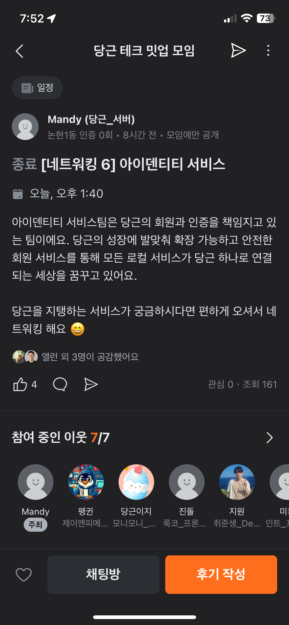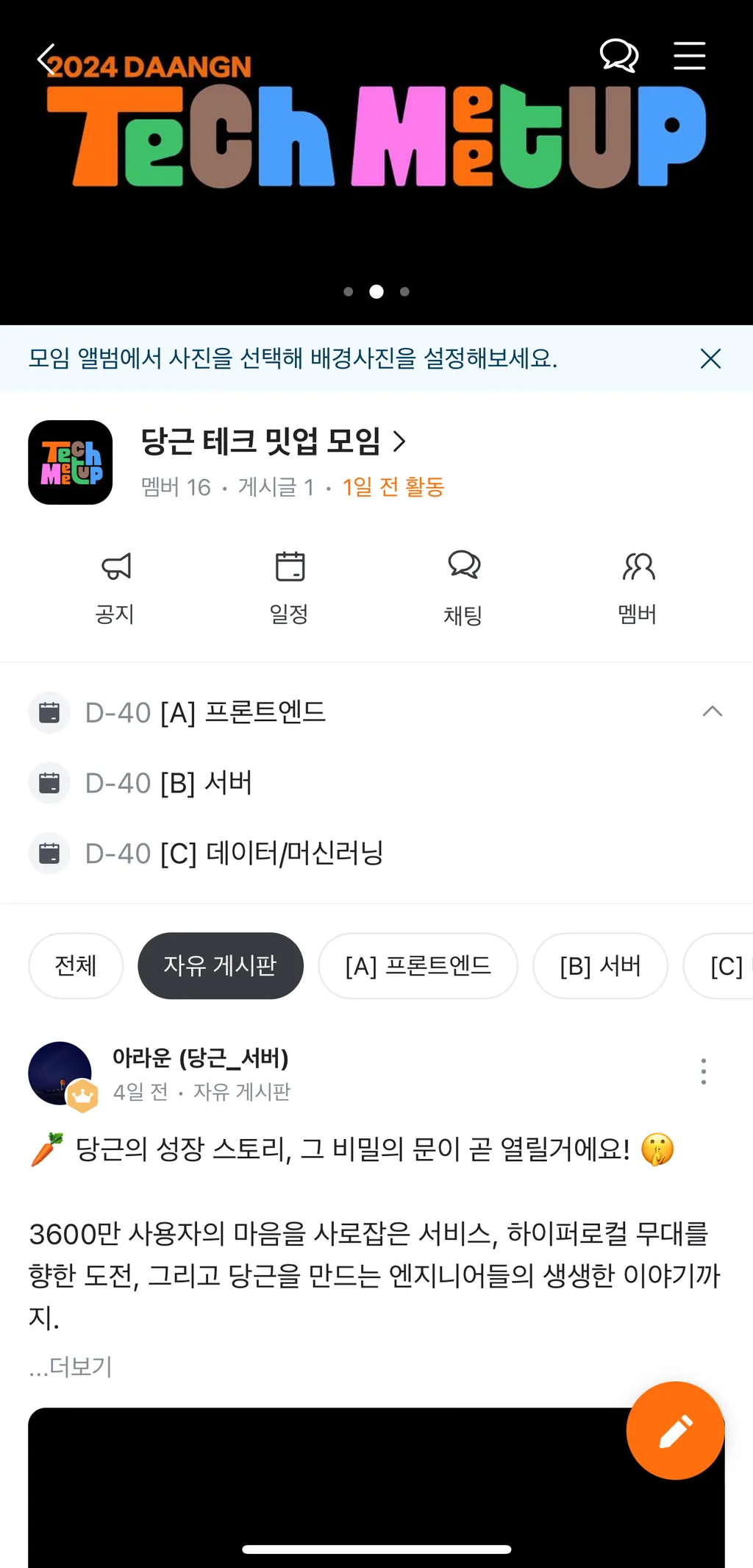 - 당근 테크 밋업은 당근의 모임 시스템을 활용하여 진행되었습니다.