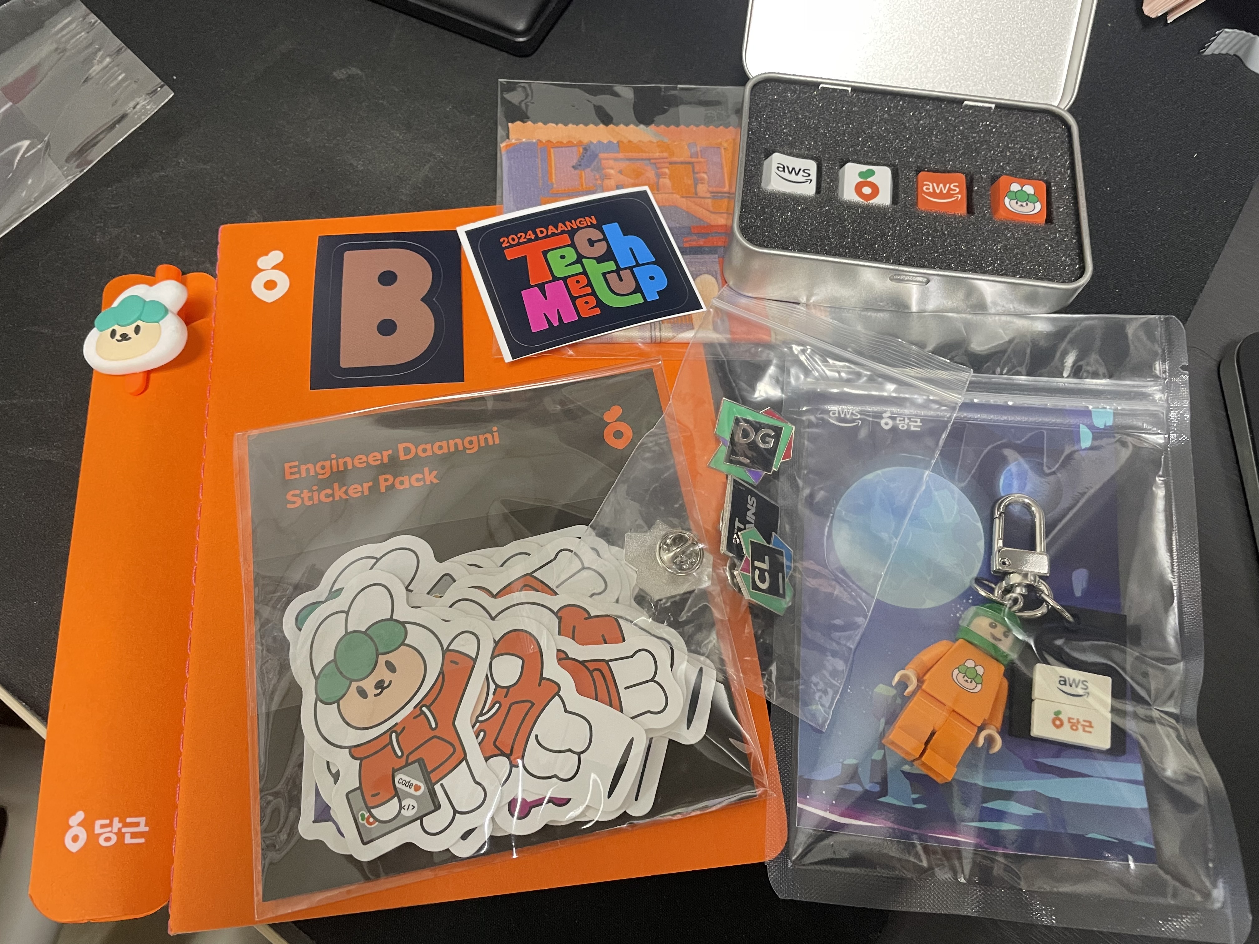 이번 테크밋업에선 당근에서 기본적으로 노트, 펜. 스티커, 안경닦이를 제공했습니다.