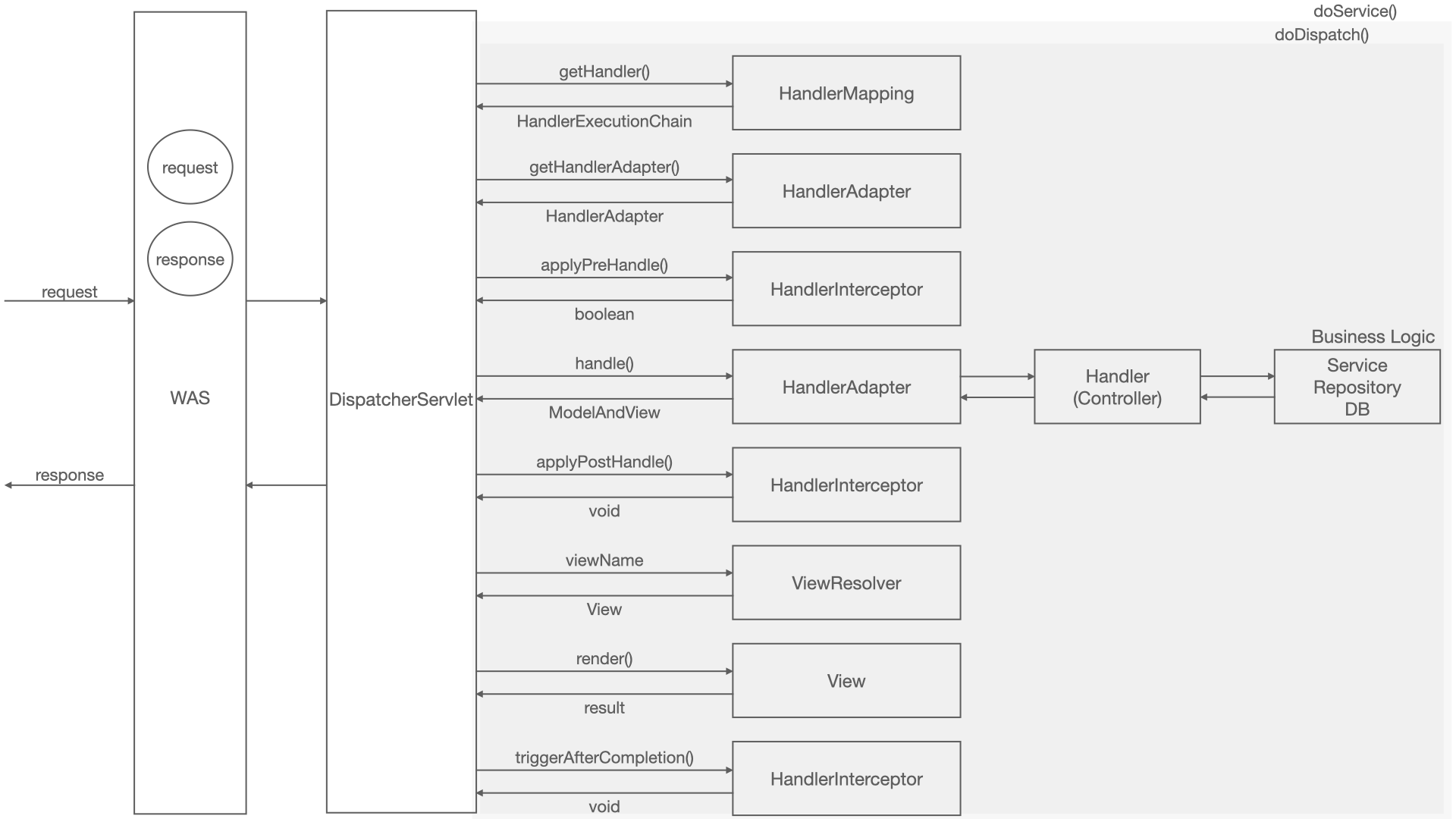 - 핸들러 어댑터가 컨트롤러로 요청을 전달한다.