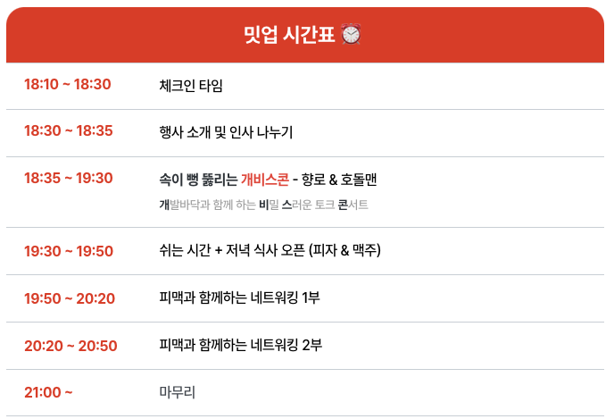 이번 테크 밋업의 주제는 속이 뻥 뚫리는 개비스콘 개발바닥과 함께하는 비밀스러운 토크 콘서트의 줄임말이다.