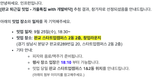 그래서 인프런 퇴근길 밋업이 나오는 대로 신청을 해볼 생각이다.